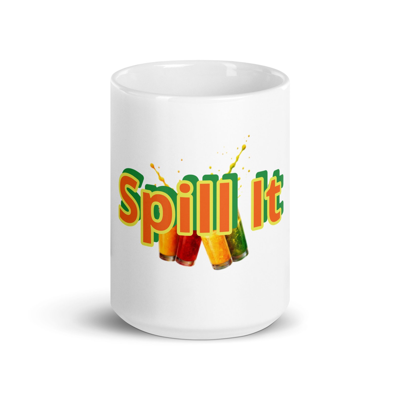 The Spill It Mug from the Spilling the Juice collection is more than just a cup — it’s a statement. Featuring vibrant splash visuals and a powerful message, this mug represents expression, truth, and not holding back.