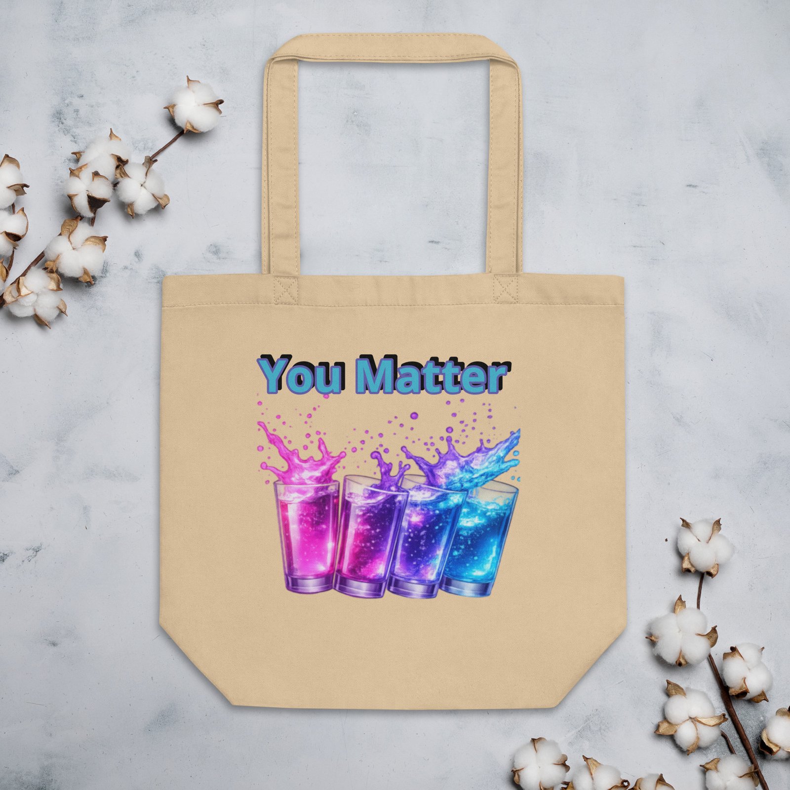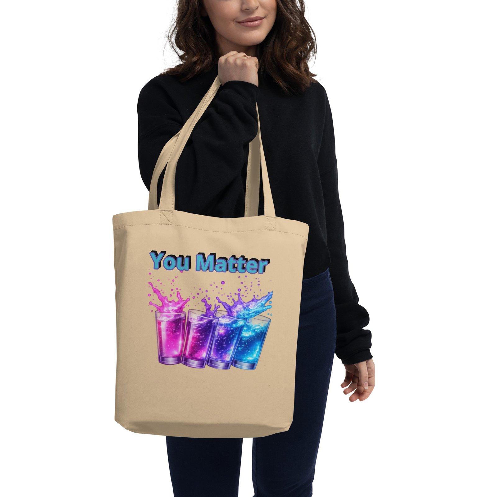 This “You Matter” tote bag features a vibrant splash design representing strength, expression, and self-worth.